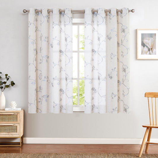 Curtainking Linen Curtains Floral Embroidery Farmhouse Light Filtering Grommet Curtain Panels 2 Pcs