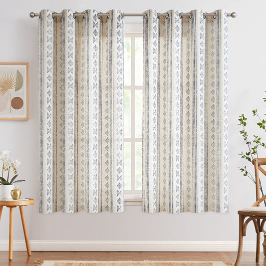 Curtainking Linen Blend Curtains Light Filtering Geometric Striped Boho Farmhouse Grommet Curtains for Living Room Pack of 2