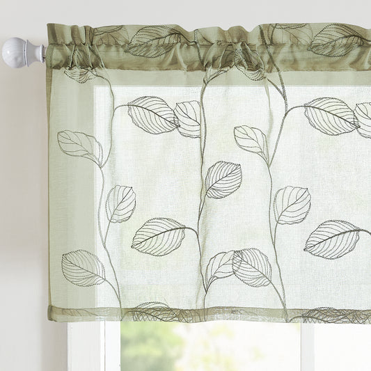 Curtainking Leaf Embroidered Window Topper Valance Farmhouse Sheer Kitchen Valance Light Filtering Short Curtains Rod Pocket 1 Panel Drape