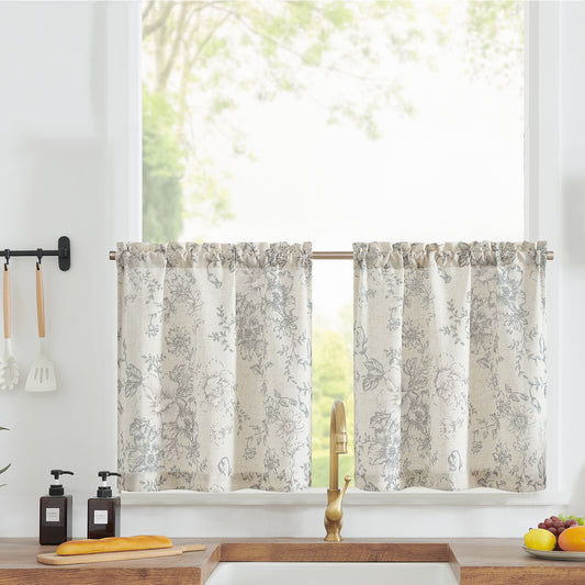 Curtainking Linen Kitchen Curtains Floral Cafe Curtains Farmhouse Cafe Curtains for Living Room 2 Panels