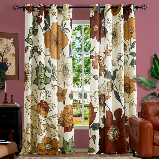 Curtainking Floral Curtains for Bedroom Linen Textured Curtains for Living Room Vintage Flower Pattern Printed Window Curtains Length 2 Panels Set with Grommet