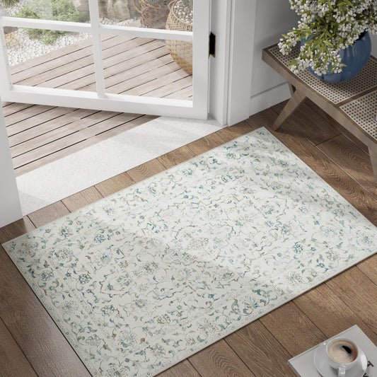 Jinchan Vintage Distressed Floral Light Blue Foldable Area Rug