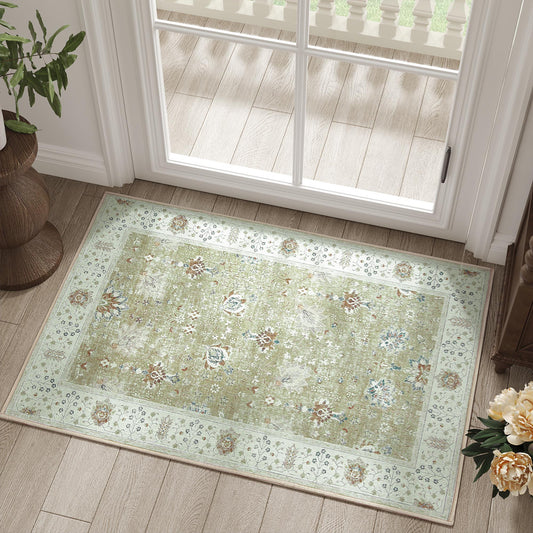 RUGKING Area Rug Multi Color Vintage Doormat Kitchen Floor Cover Indoor Soft Floral Mat Retro Accent Rug Bathroom Living Room Bedroom Office