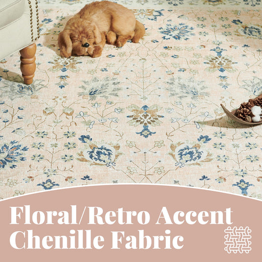 RUGKING Living Room Rug Floral Printed Pink Indoor Accent Mat with Non-slip backing Retro Persian Rugs for Bedroom Dining Room