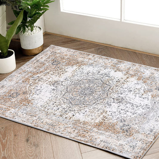 Jinchan Vintage Distressed Medallion Grey Foldable Living Room Area Rug