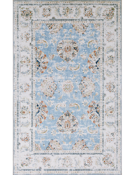 Jinchan Persian Distressed Floral Light Blue Foldable Area Rug