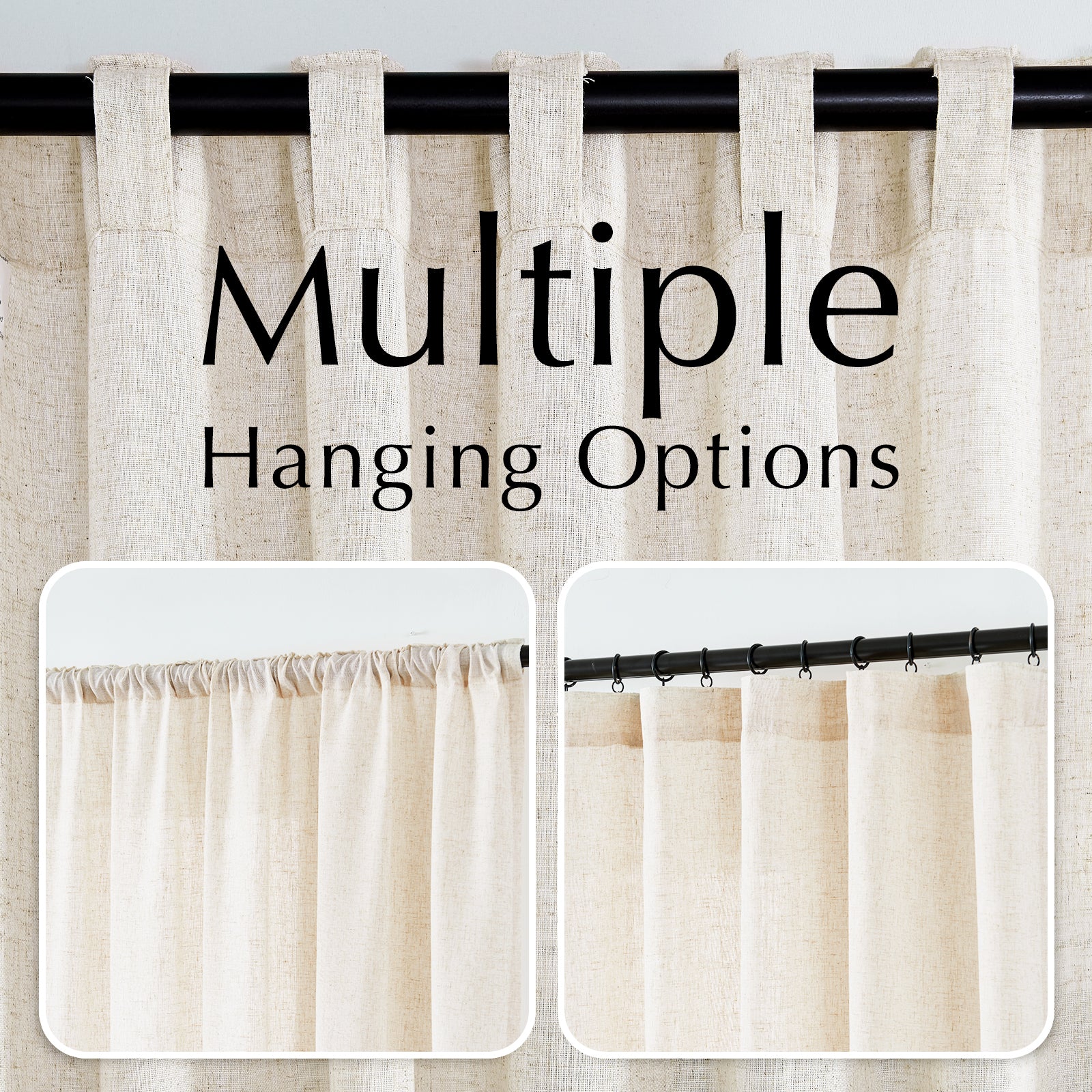 Curtainking Back Tab Curtains Light Filtering Curtains Living Room Bedroom Drapes Rod Pocket Linen Farmhouse Curtains Pack of 2