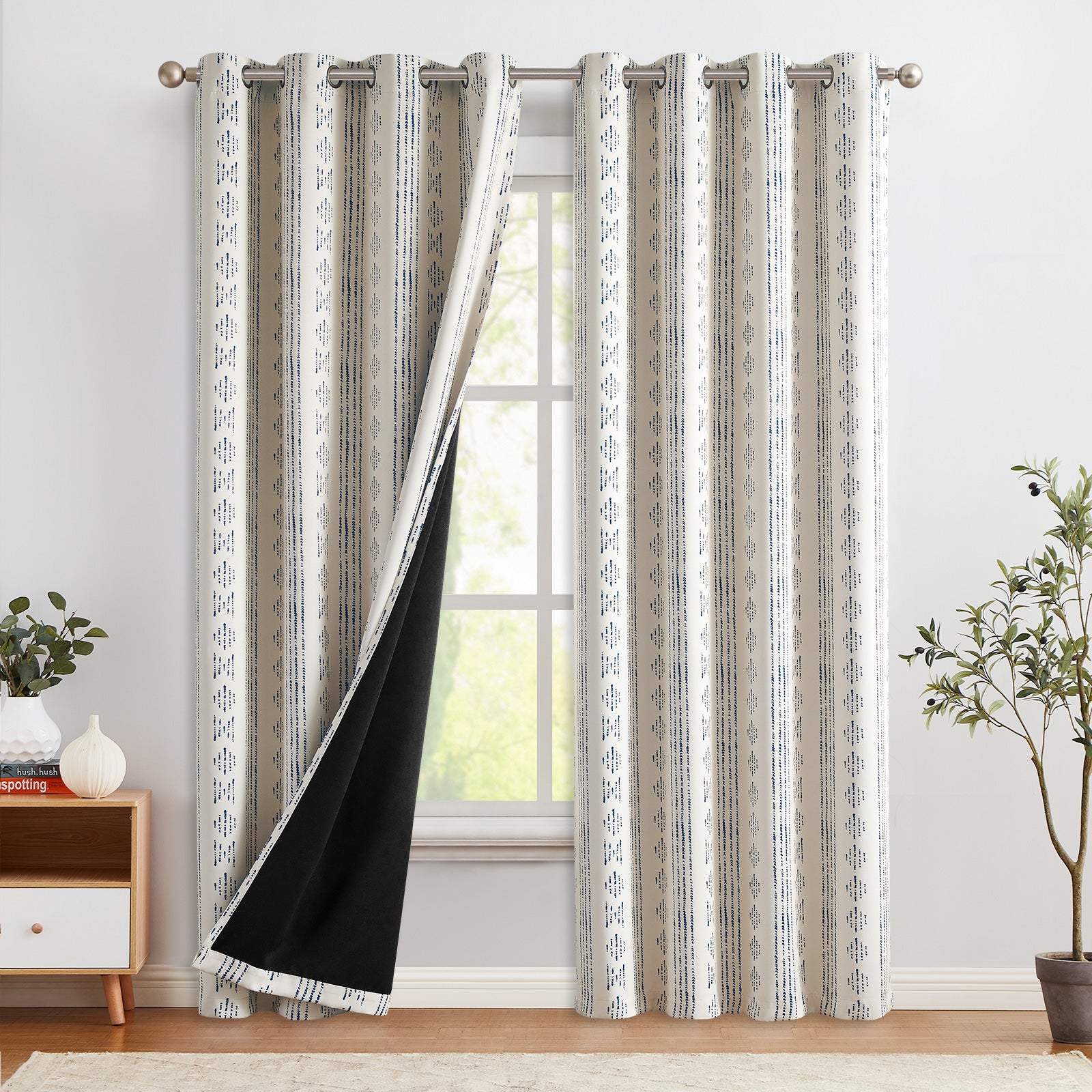 Curtainking 100% Boho Blackout Curtains are ideal for giving your living space a personalized, elegant look. These room darkening curtains ensure your absolute privacy with all your activity.These thermal insulated curtains will make a budget noticeable difference, lower your heating & cooling cost by preventing sunlight & draft from getting in. The neutral color is easy to match with any home decor style. A grommet top design makes it easy to hang and style your curtains. Grommets fit on a rod up to 1.6” in diameter. These boho grommeted curtains are perfect for bringing life and style to any room in your home from your kitchen, living room, or bedroom!