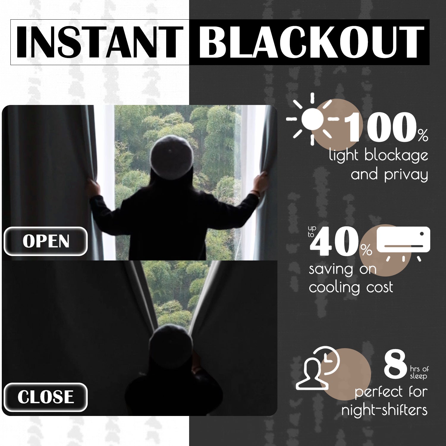 - Made of substantial fabric, these window curtains feature a densly woven backing for effective light and heat control. They can block out bright sunlight, soften outside noise, and regulate the temperature, creating a dark, quiet and warm space for you to relax.