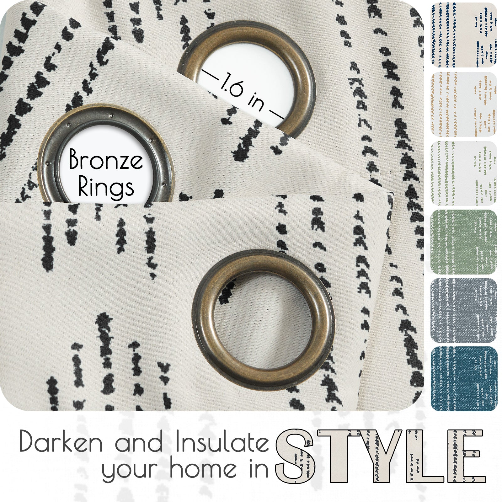 - Hanging Option: These elegant window curtains with 1.6 inch inner diameter grommet top can work easily with most regular curtain rods. The antique bronze grommet top is easy to install, smooth to draw.