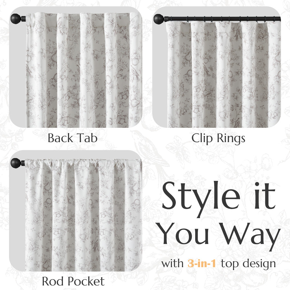 CURTAINKING Blackout Curtains Printed Floral French Farmhouse Curtains for Bedroom Living Room Back Tab Thermal Insulated Window Drapes 2 Panels