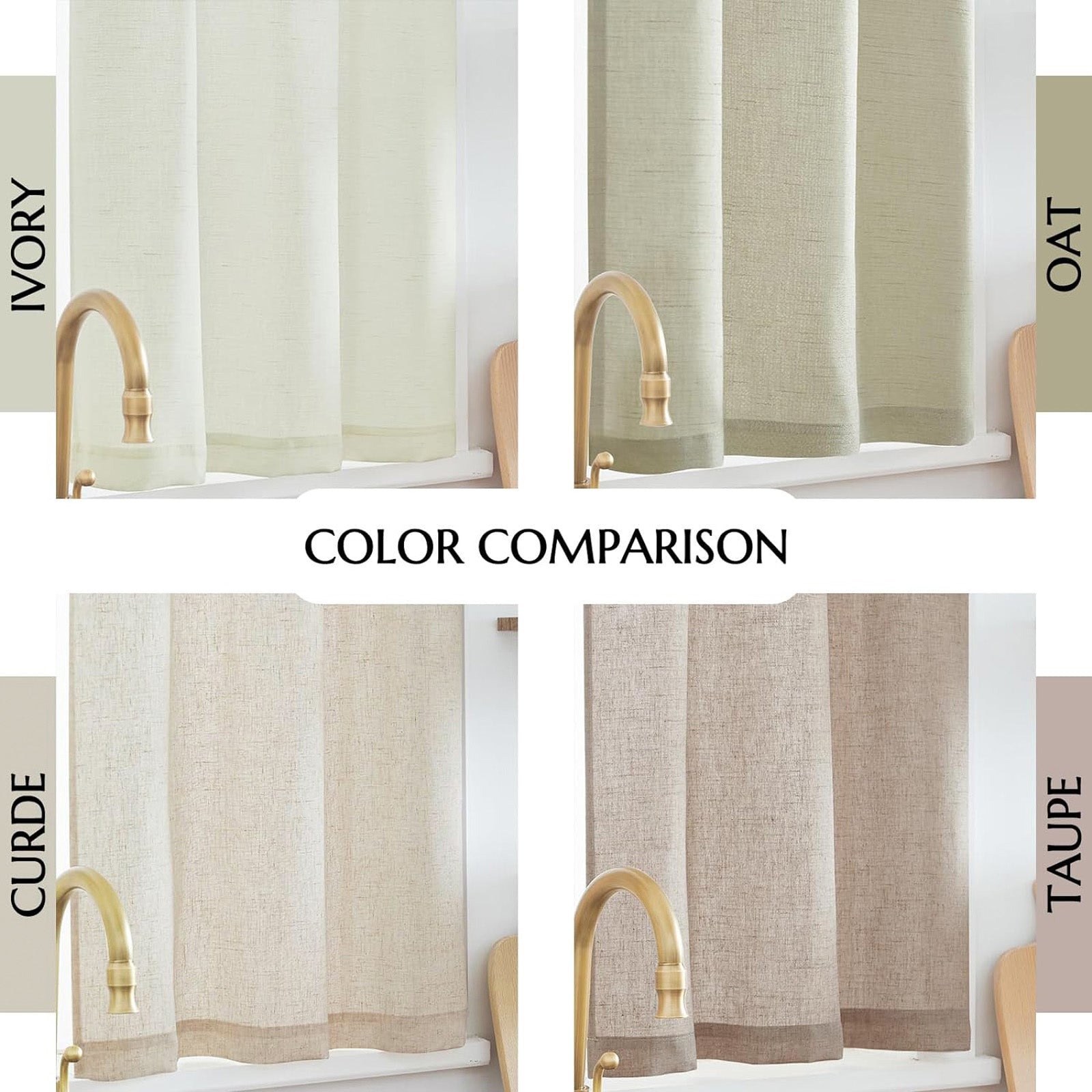 CURTAINKING linen blend textured kitchen window curtain tier and valance set has superlative qualities of breathability, durability and long lasting with top-quality stitching. Crisp linen adds soft texture and a nature look to your windows. The tiers and valance 3 piece set add a finishing touch to your room while gently filtering the sunlight. Your space can be kept light and airy while you can enjoy your own activities in the living room without being disturbed by glances. Machine wash in cold water and tumble dry in gentle setting. Do not bleach.