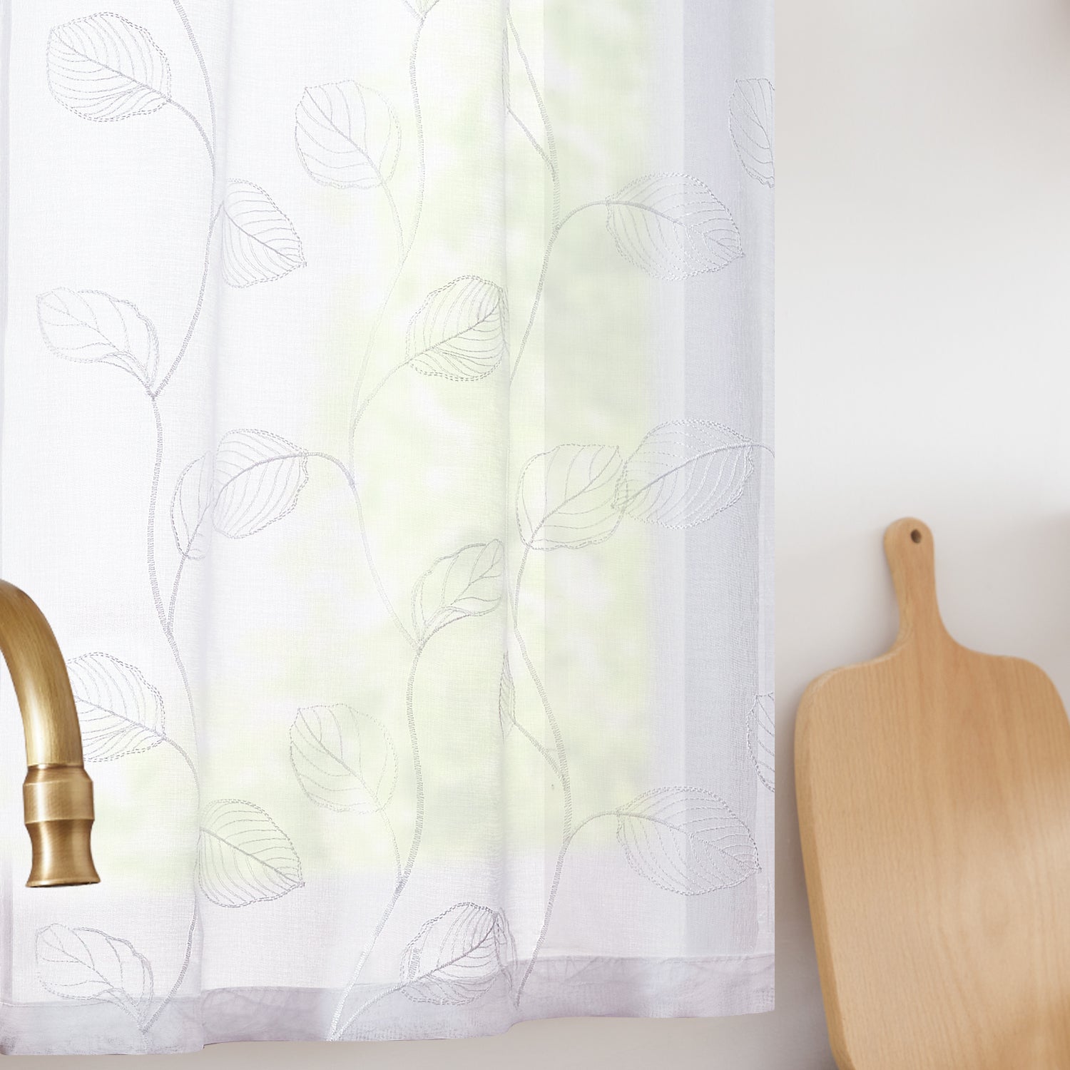 - Classy leaf embroidery design with its visually clean lines gives the curtain an elegant and contemporary look.