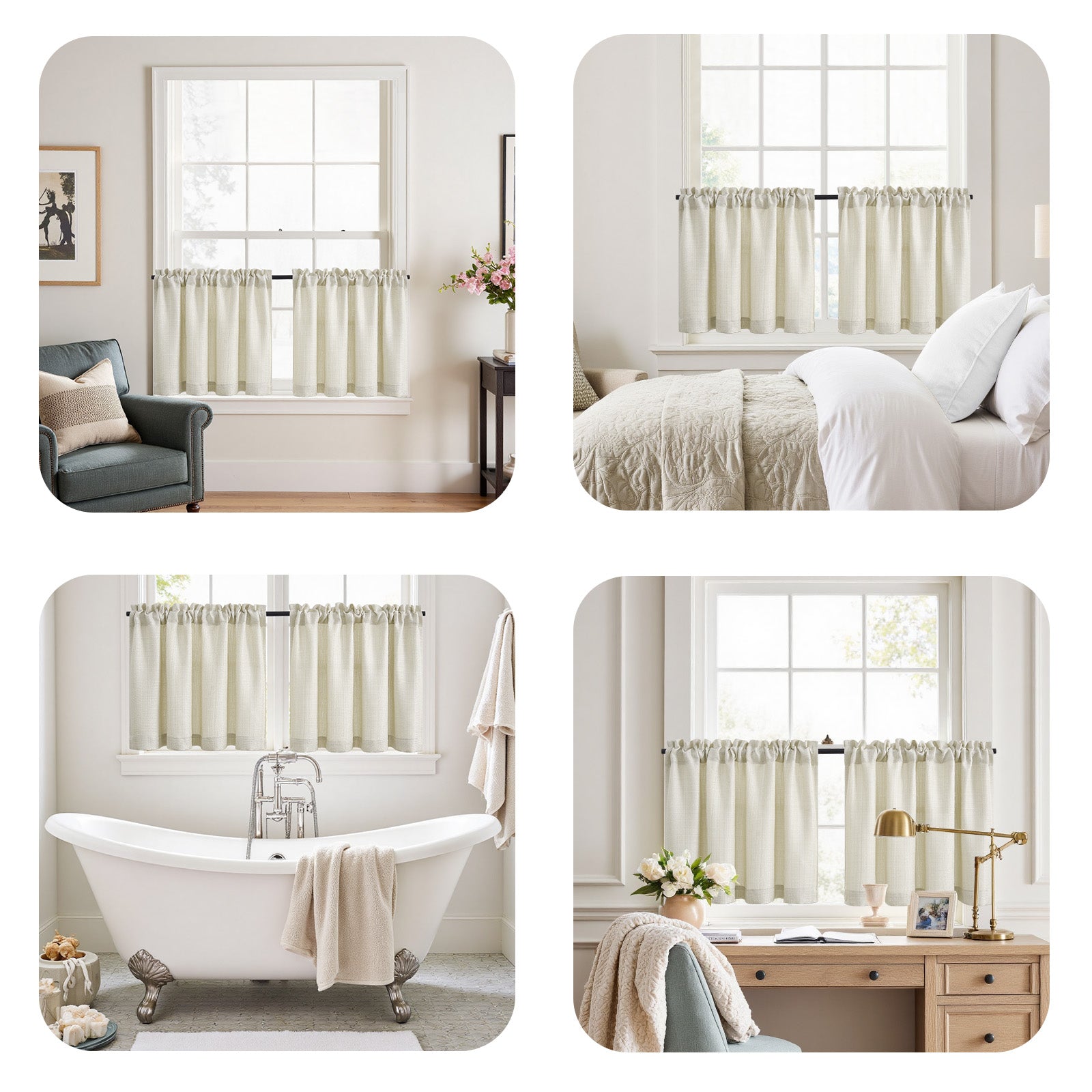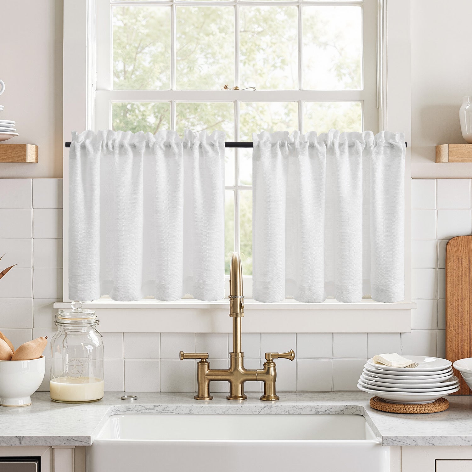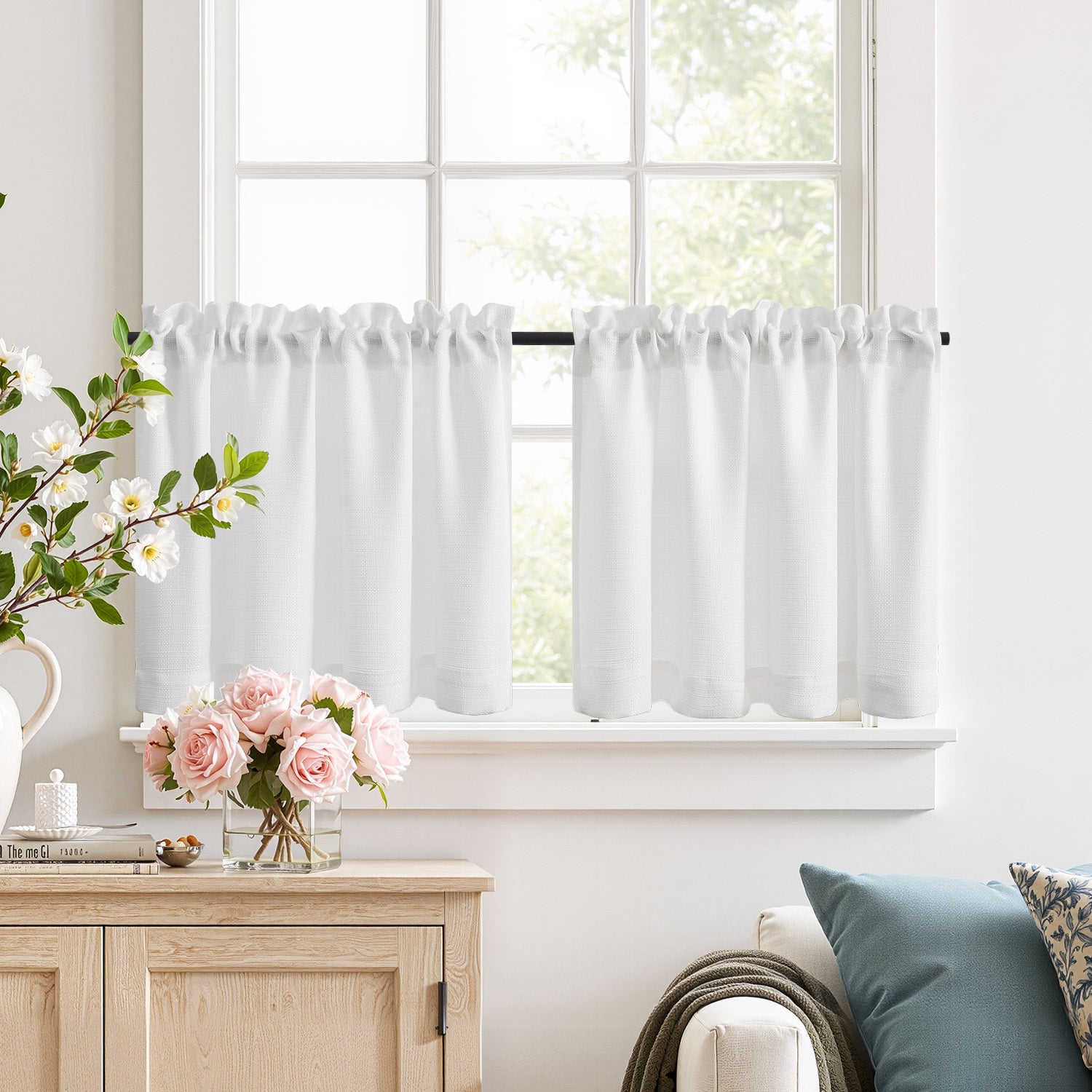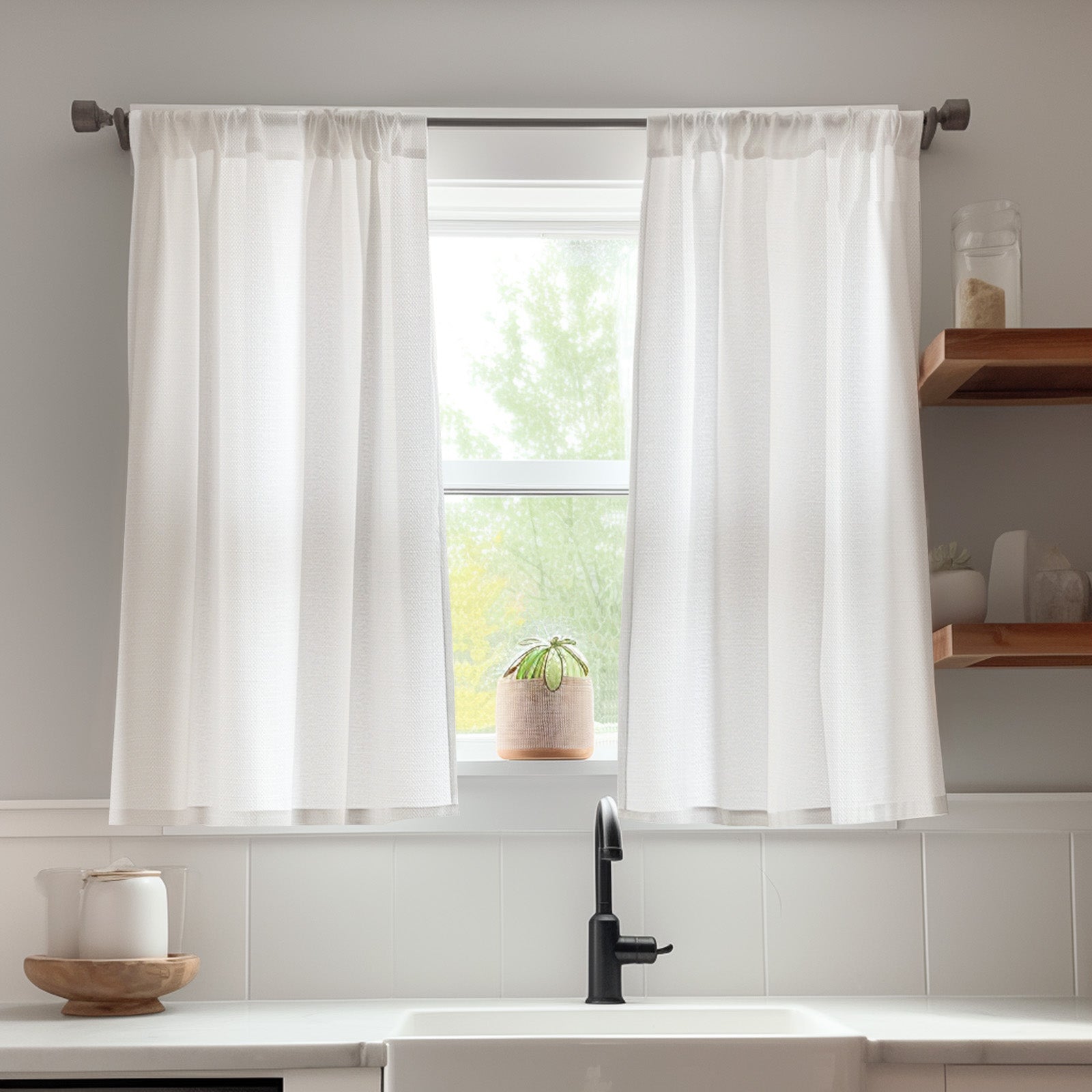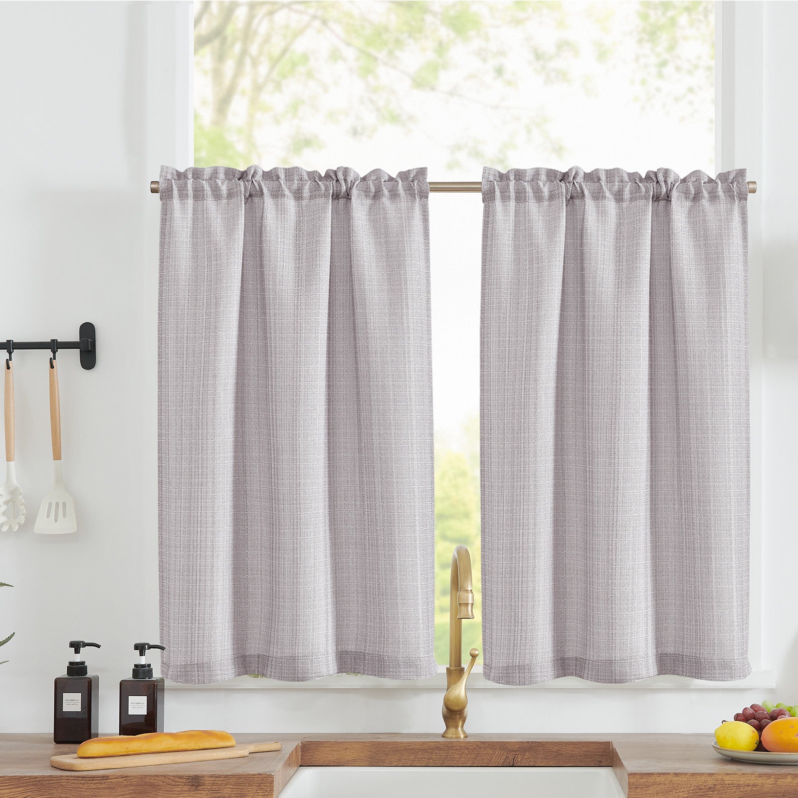 - Casual weave linen look kitchen tier curtains add a rustic touch to your windows.