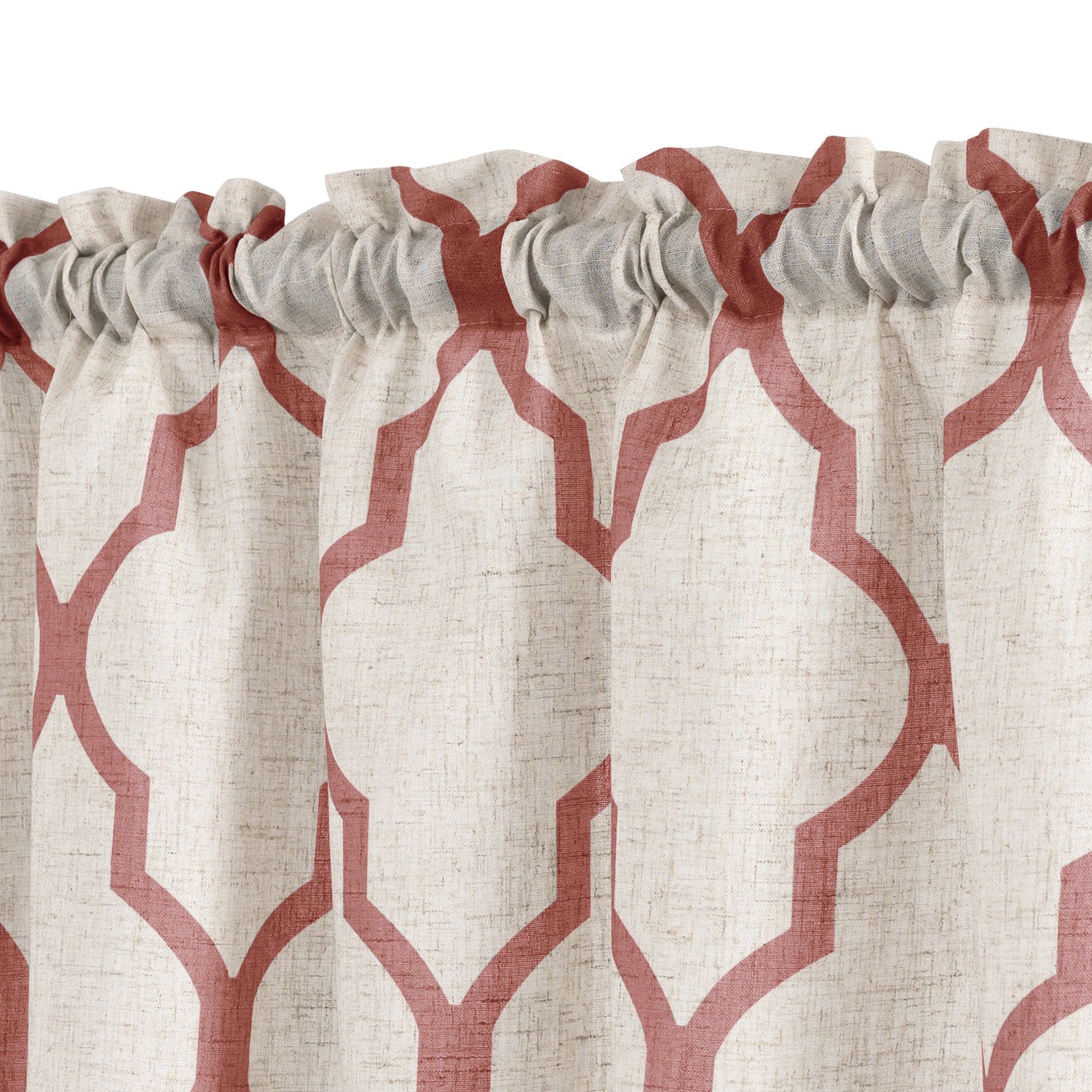 CURTAINKING Kitchen Valance Curtain Moroccan Tile Print Flax Linen Blend Small Window Curtains 16 inch 1 Panel Rod Pocket