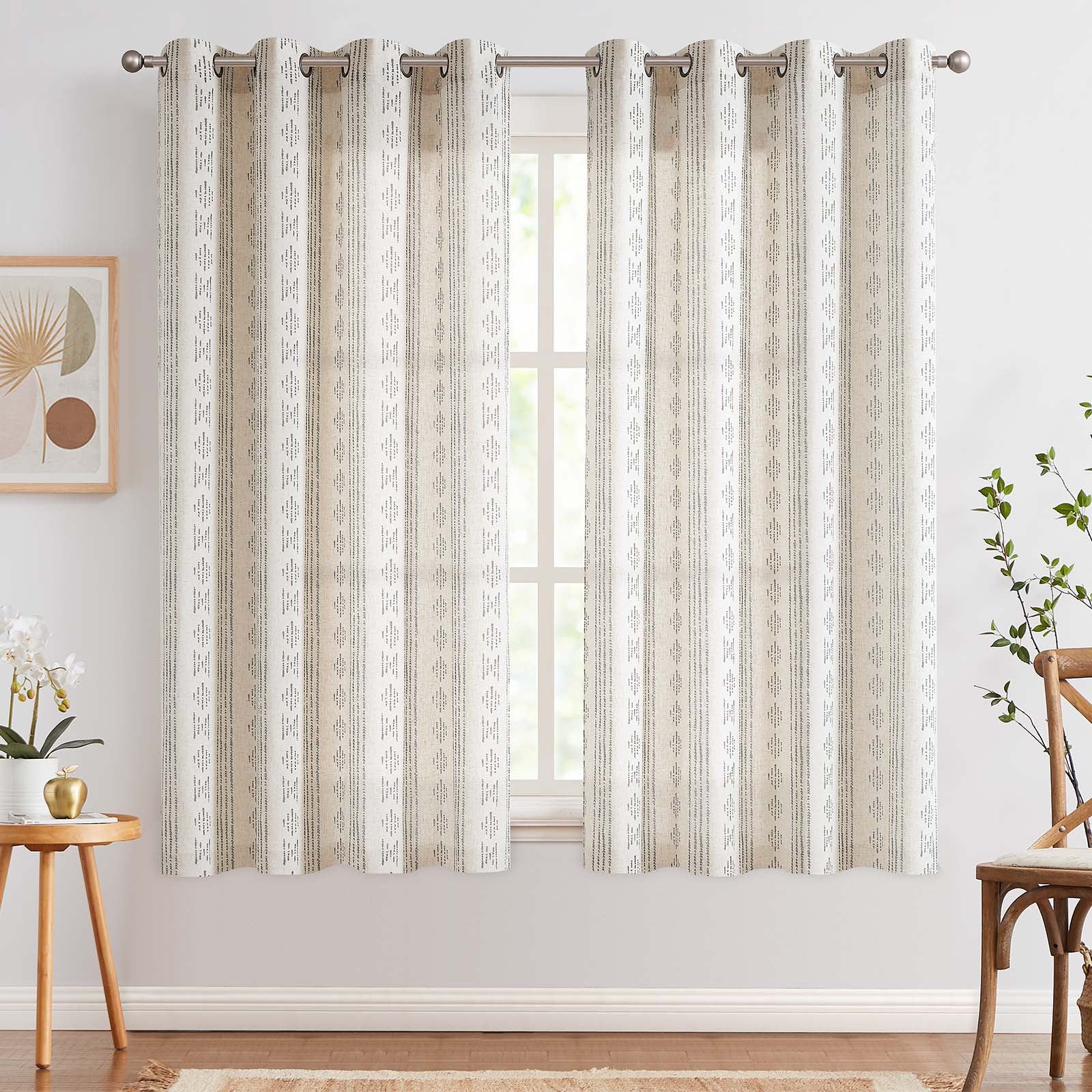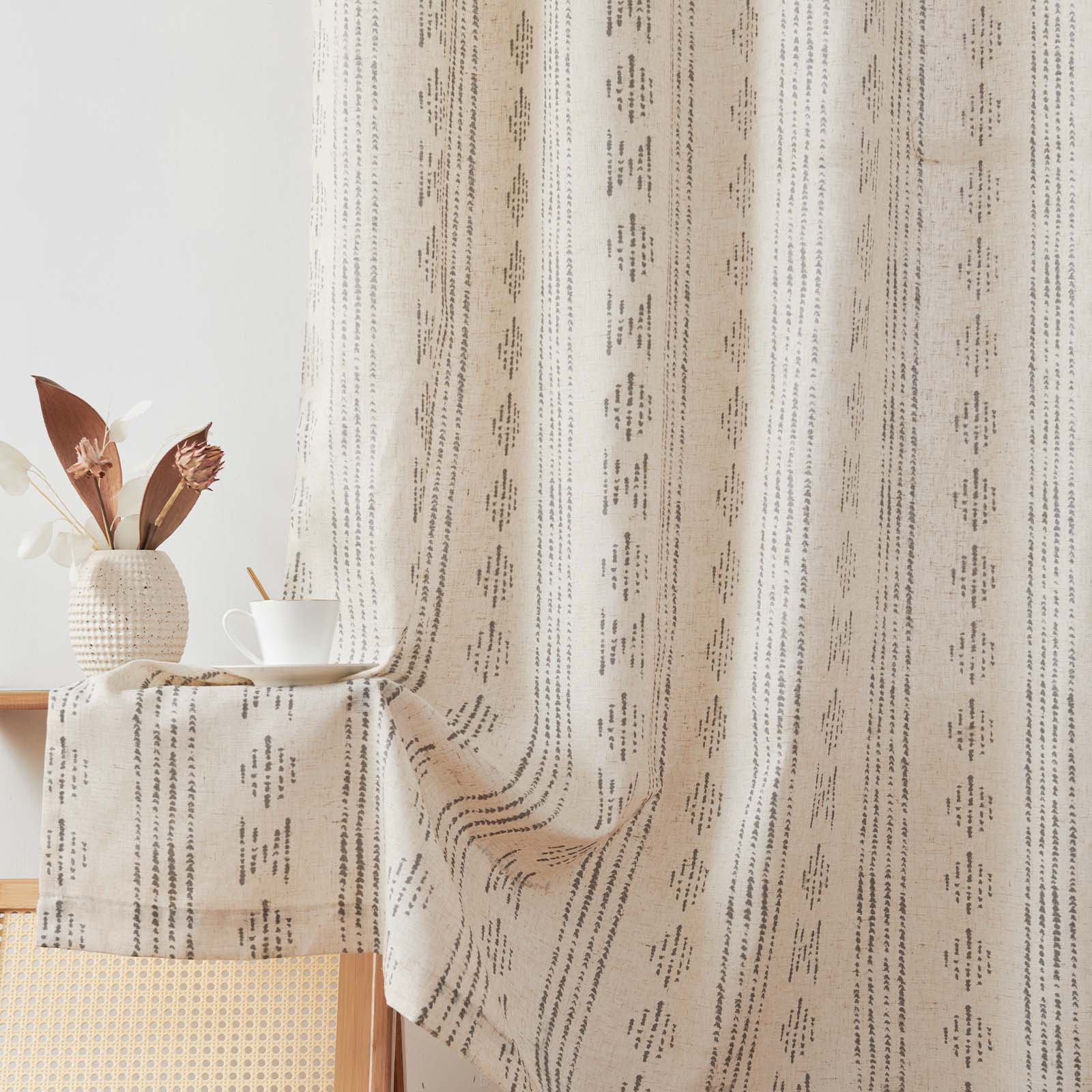 Curtainking Linen Blend Curtains Light Filtering Geometric Striped Boho Farmhouse Grommet Curtains for Living Room Pack of 2