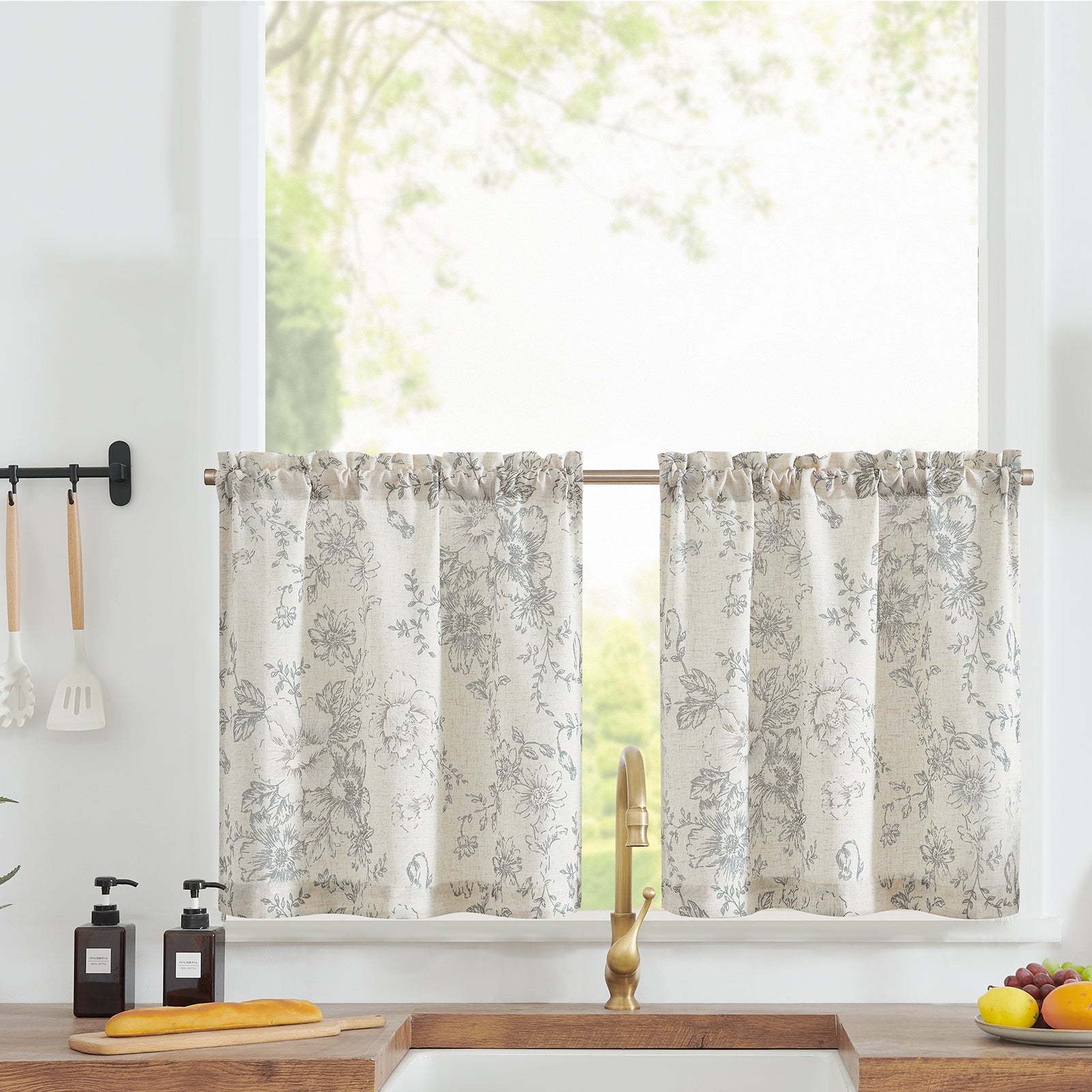Curtainking Linen Kitchen Curtains Floral Cafe Curtains Farmhouse Cafe Curtains for Living Room 2 Panels