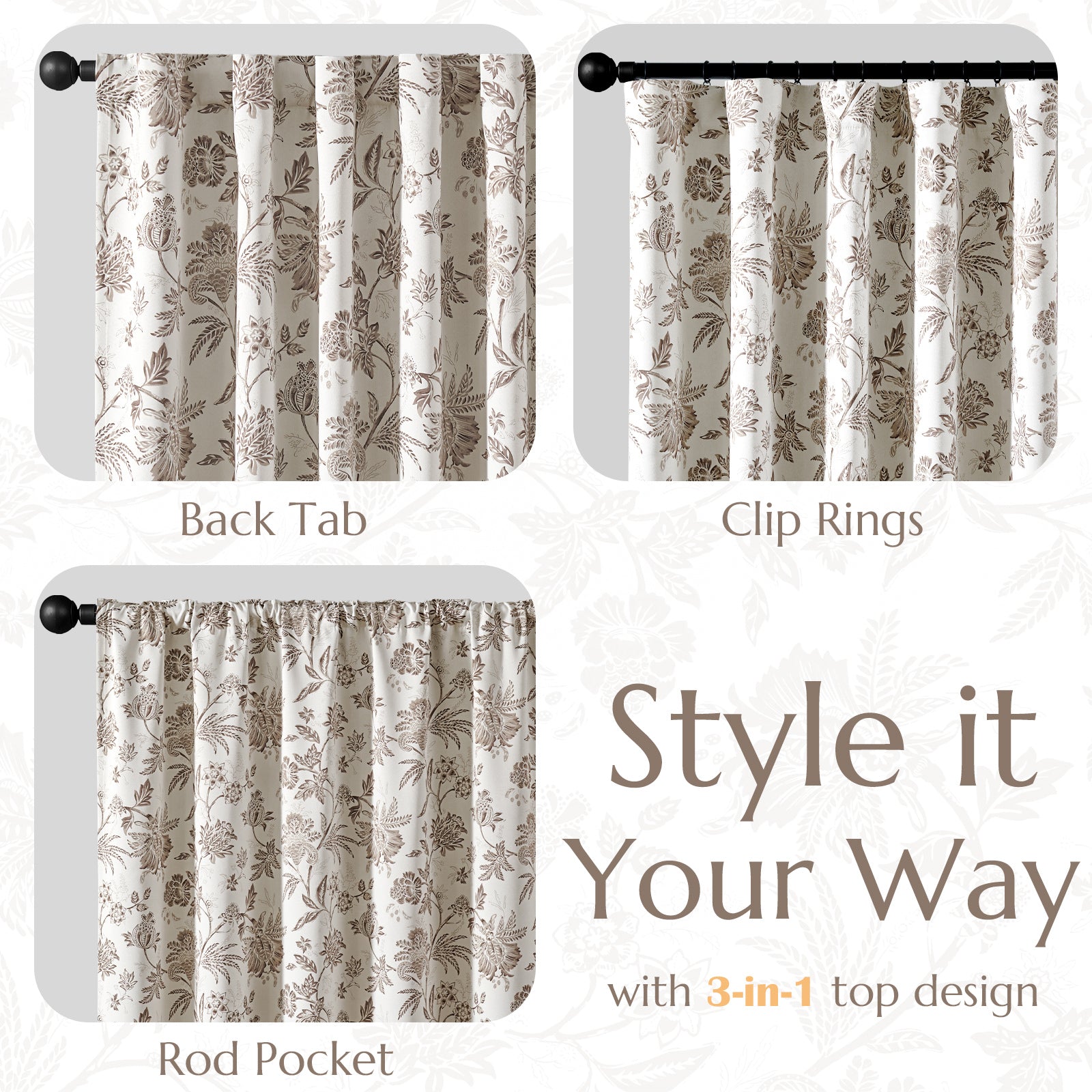 - Package includes 2 panels of floral blackout curtains for a complete window treatment solution
