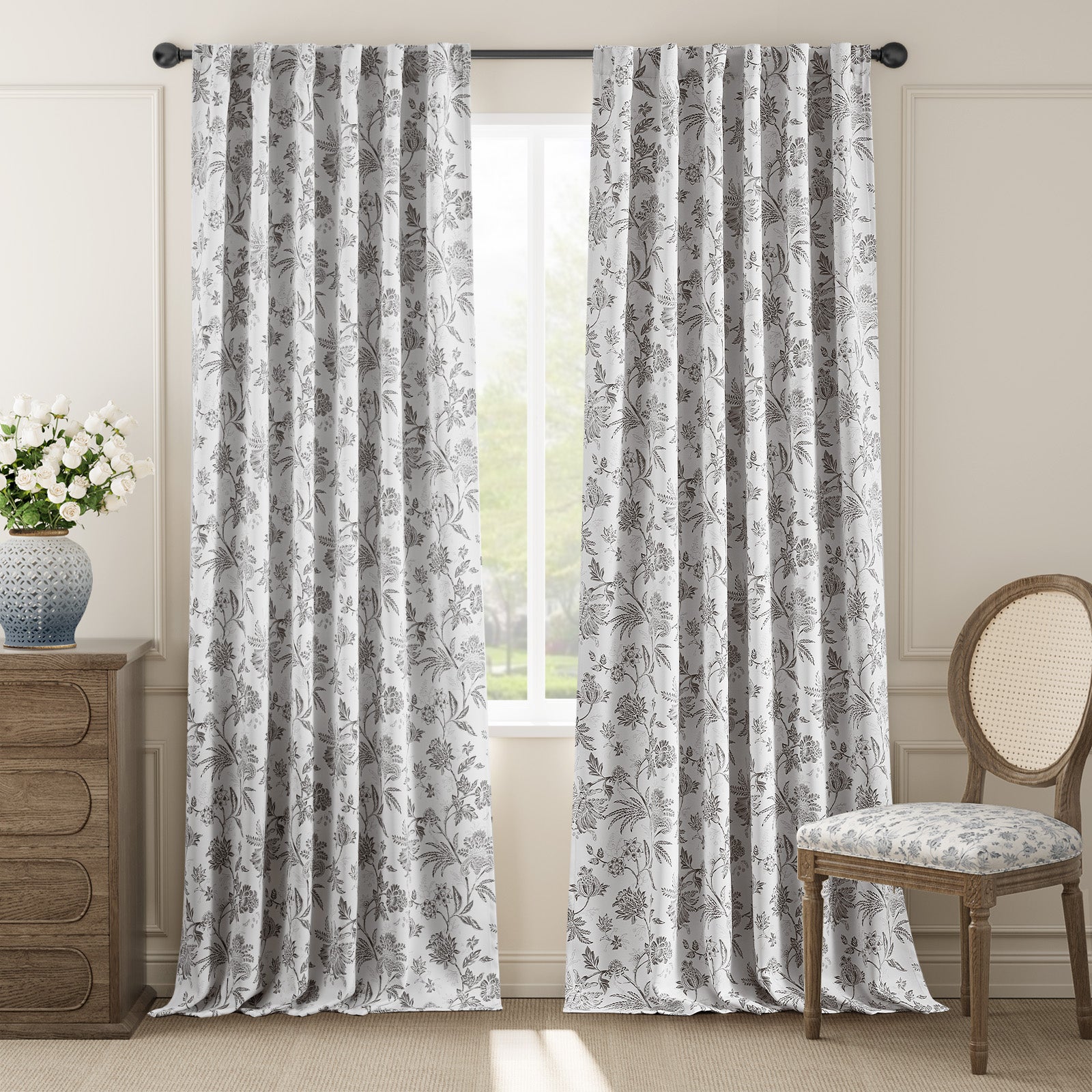 Curtainking Luxury Look Farmhouse Floral Print Rod Pocket Blackout Curtains 2 Panels