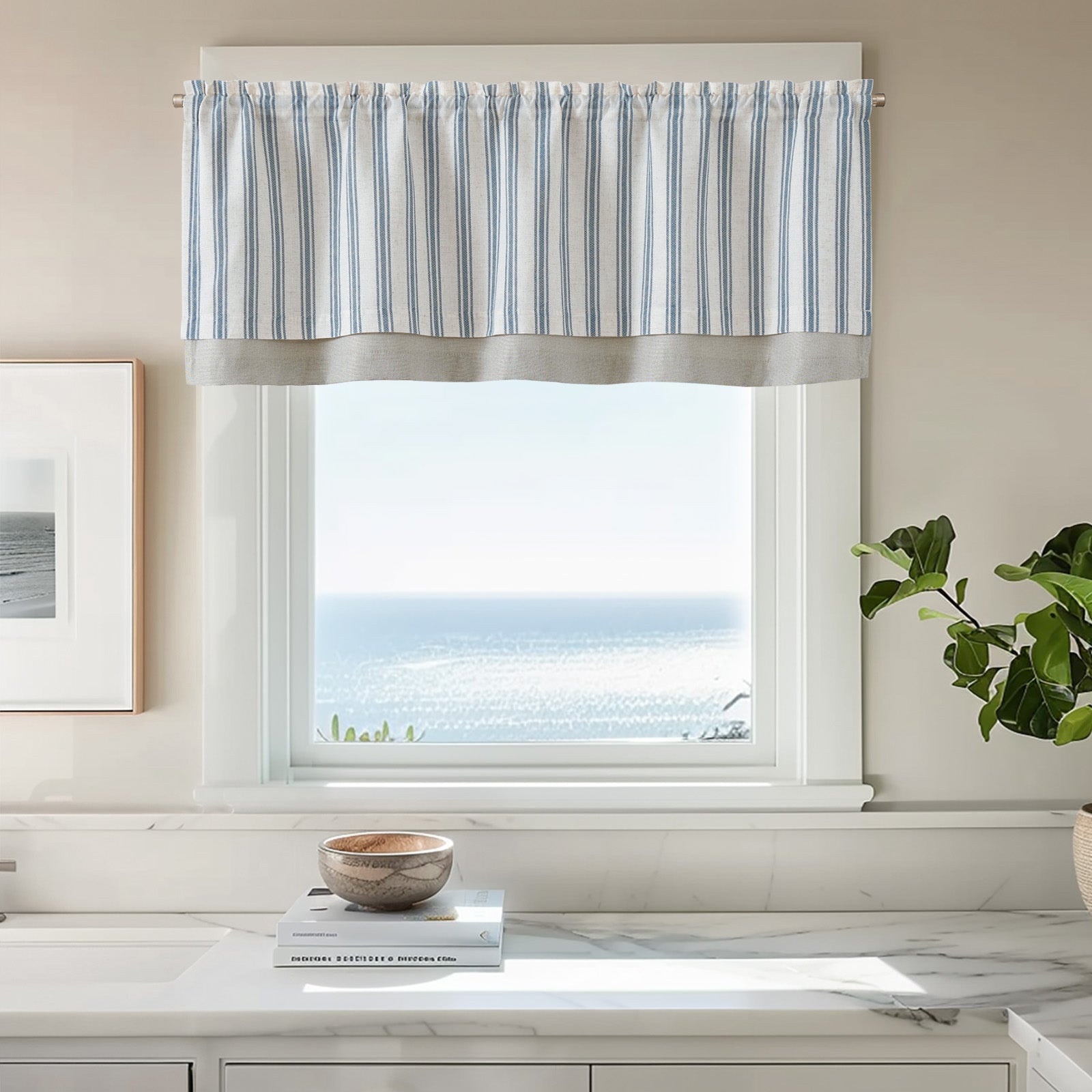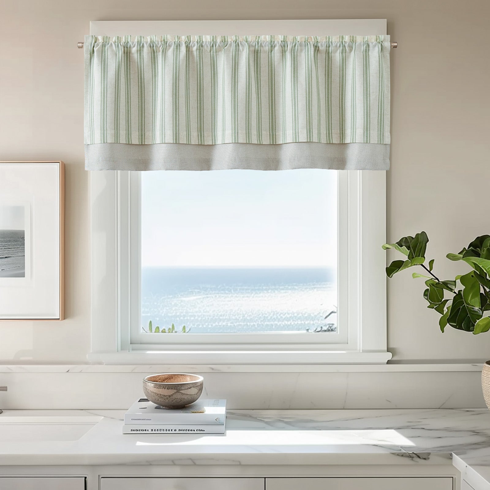 Curtainking Rod Pocket Linen Valance Curtain Double Layer Valance for Kitchen 1 Panel