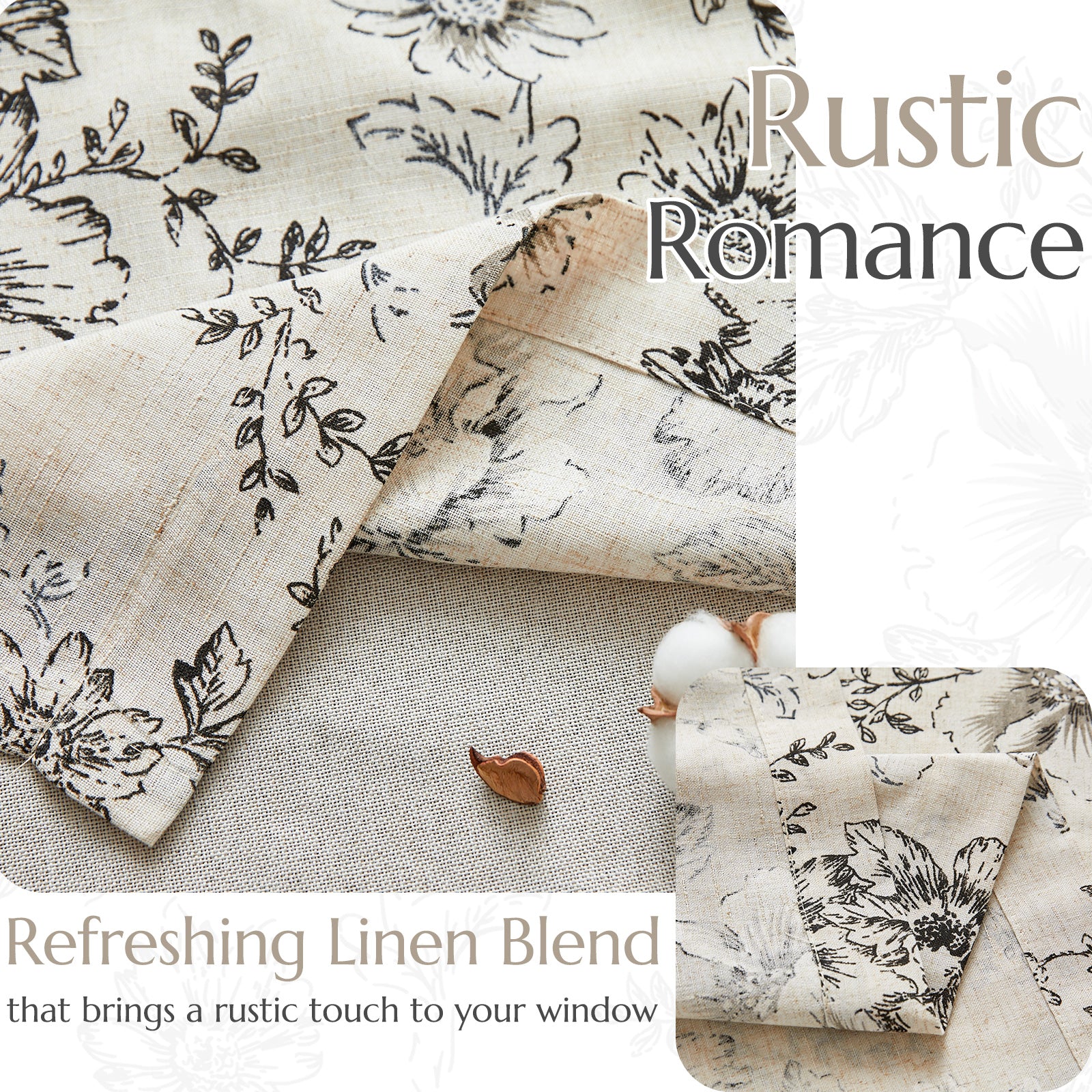 - Linen Valance: Immerse your home in the essence of farmhouse style with our 50" x 16" valance. The linen blend fabric adds rustic aesthetics that complements kitchen windows. 2-inch pole pocket ccommodates cafe curtain rods under 1 1/5" diameter curtain rod.
