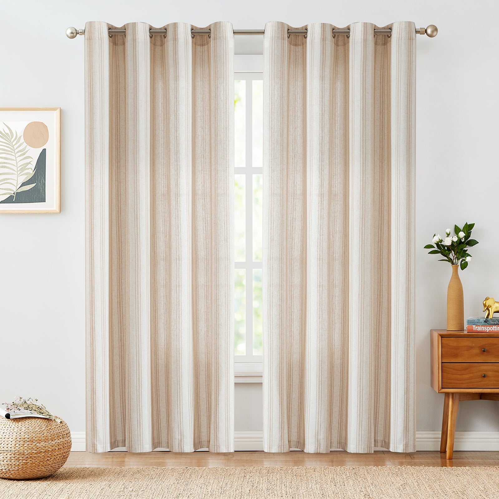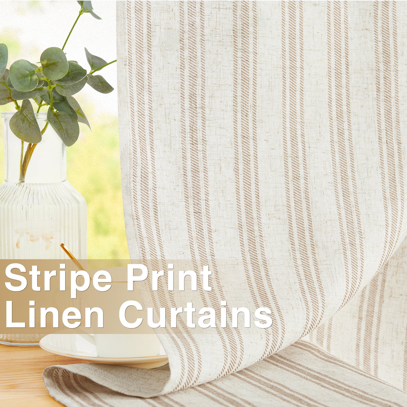 Curtainking linen ticking striped curtains are ideal for creating a home modern country style through neutral colors and refreshing vertical stripes pattern. These pretty living room curtains are made of linen blend fabric and go well with farmhouse decor, bringing a rustic touch to your window. During the day, these light filtering curtains can gently filter sunlight and provide privacy for your indoor activities, especially blocking out sun and heat while watching TV. Linen pinstripe curtains can not only suit living room area, but our farmhouse curtains can also be a perfect finishing touch to your bedroom, feature 1.6 inch diameter sturdy matte silver rings head to coordinate with most window curtains rods. This farmhouse stripe curtain for living room can withstand machine wash in cold water and tumble dry in gentle setting. Creases can be pressed out with low temperature ironing. Wash with similar colors with no bleach.