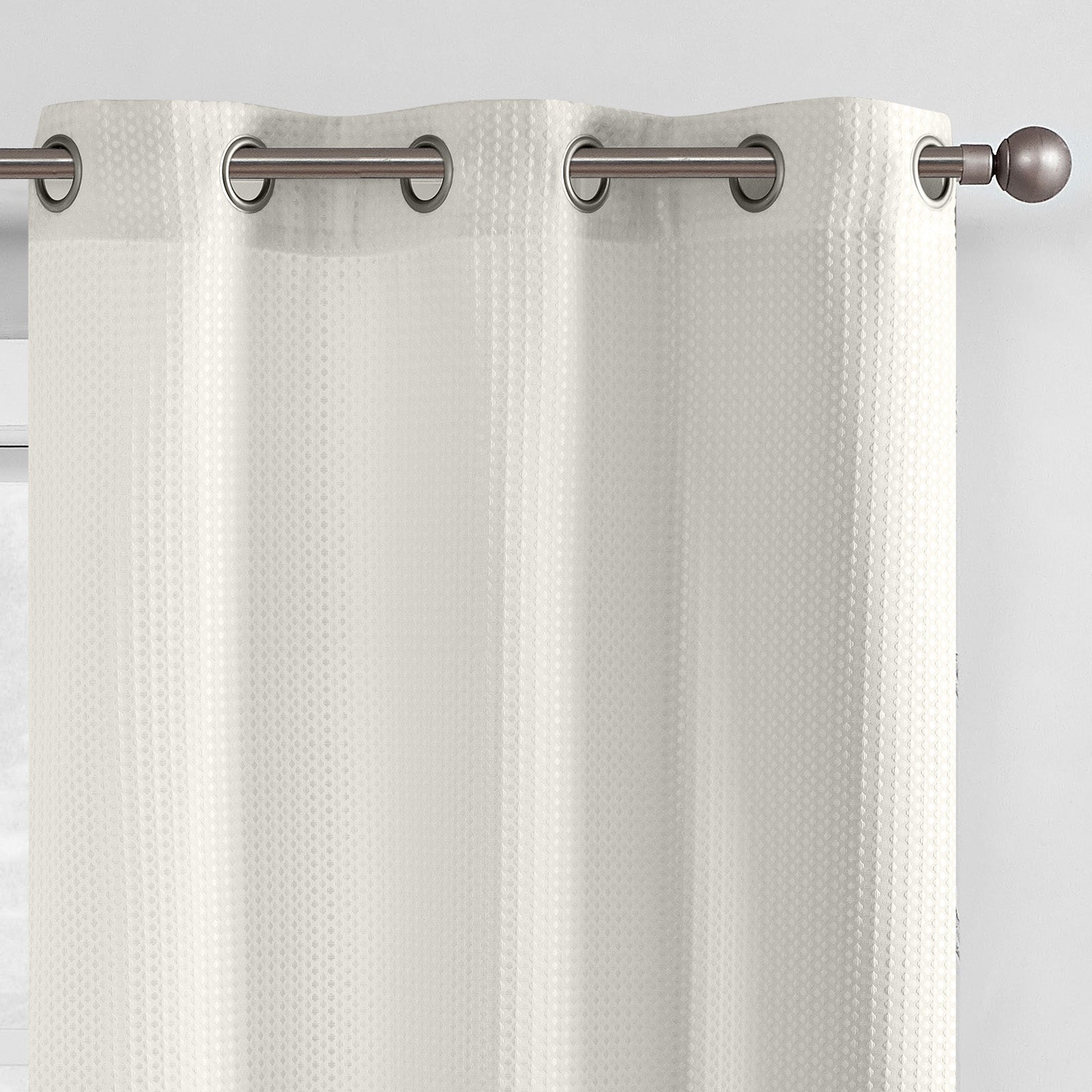 - Package includes 2 panels waffle weave textured light filtering curtains.